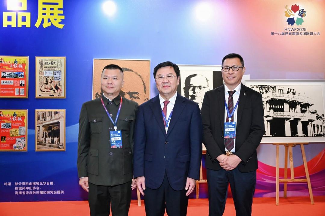 图说:印度尼西亚海南总商会名誉主席符之帅(世界符氏商会副会长)(左),中国侨联副主席、海南省侨联主席梁谋(中),印度尼西亚海南总商会会长芦克明(右)。印尼共工社发