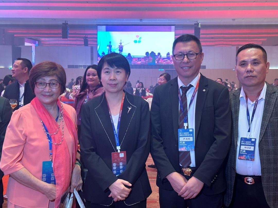 中共海南省委常委、海南海外联谊会会长尹丽波出席联谊大会并致辞。她指出,海南自由贸易港建设正蓬勃展开,政策红利持续释放,营商环境不断优化,开放型经济新体制加速构建。海南自由贸易港将于12月18日正式啓动全岛封关运作,希望世界海南乡团联谊大会能够继续发挥桥梁与纽带作用,团结引领广大海外乡亲,做海南自贸港建设的“参与者”、“推介者”和“贡献者”。尹丽波欢迎欢迎世界海南乡亲常回家看看,亲身感受家乡的发展变化。并诚邀乡亲们积极回乡投资创业,共享自由贸易港发展新机遇。